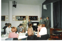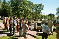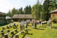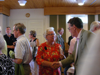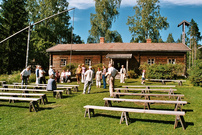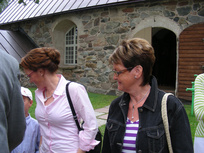 Uusikaupunki 2010 Vuoden 2010 kesätapahtuma pidettiin uudessakaupungissa, missä sukulaiset kokoontuivat jumalanpalvelukseen Uudenkaupungin vanhaan kivikirkkoon. Kirkko on toiminnassa kesäaikaan. Jumalanpalveluksen jälkeen laskettiin kukkalaite sankarihaudalle. Tutustuimme kirkon lähellä olevaan museoon, jossa on Warma-laivan pienoismalli. Warma oli yksi niistä laivoista, jotka liikkuivat maailman merillä ja toivat hyvinvointia kaupungin asukkaille. Oppaan johdolla saimme tutustua Olli ja Ritva Heikkalan kotikaupunkiin, missä näimme sekä hienoja kunnostettuja puutaloalueita että uutta rakentamista. Yksi mielekiintoinen paikka oli keskustassa tyhjä tontti, jonne siirrettiin kartanorakennus muualta ja siinä rakennuksessa Venäjä ja Ruotsi neuvottelivat Uudenkaupungin rauhan 1721. Kaupunkikierroksen jälkeen matkaa jatkettiin Lokalahdelle, missä sijaitsee Heikkalnpään tila. Tilan osti 1800- luvun loppupuolella kauppalaivuri Emanuel Lindqvist. Tila on edelleen samalla suvulla ja matkalaisilla oli mahdollisuus jalkautua bussista hetkeksi lehtevän rannikkotilan pihapuistossa, missä Teemu Heikkala kertoi tilan historiasta ja nykyisyydestä. Matka jatkui takaisin kaupunkiin, missä päivää jatkettiin kodikkaassa seurakuntakeskuksessa lounaan merkeissä Olli Heikkalan tervehdyspuheen jälkeen. Lounaan jälkeen Teemu Heikkala selvitti vieraille, miten Uudenkaupungin sukuhaara on mukana Giers-Laurilan sukukirjassa. Teemu Heikkalan mukaan Emanuel Lindqvistin poika John osti tilan isältään ja opiskellessaan Satakunnassa, hän oli tutustunut kokemäkeläiseen Beda Horelliin, josta tuli hänen vaimonsa. Teemun kertoma sukuhistoria oli mielenkiintoinen. Tilaisuudessa saimme kuulla paikkakunnan nuorten musiikkiesityksiä puheitten lomassa. Juhlaohjelma aloitettiin Satakunnan laululla ja lopetettiin Varsinaissuomalaisten laululla. Kesätapahtuman järjestelyistä vastasivat Olli, Ritva ja Teemu Heikkala. | |